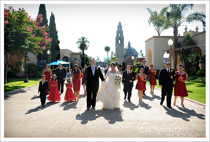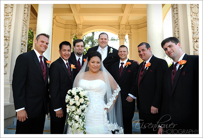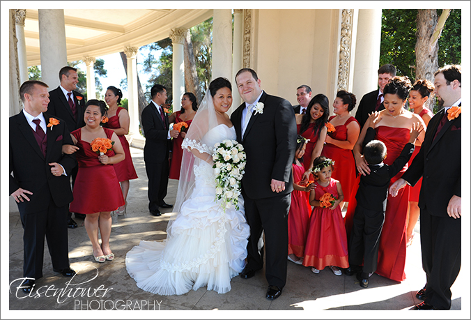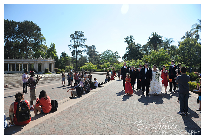 A great moment – as we walked the bridal party through the Organ Pavillion at Balboa Park, a group of young students spontaneously started to applaud the newlyweds. See what I mean about magnetic personalities? Even strangers couldn’t resist getting in on the celebration.