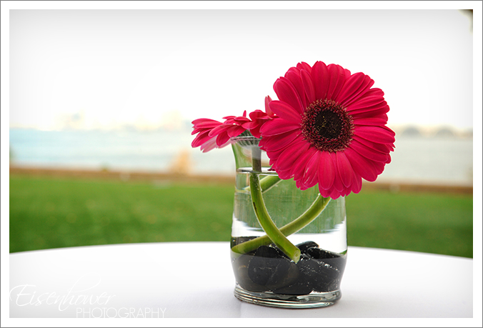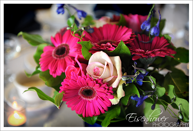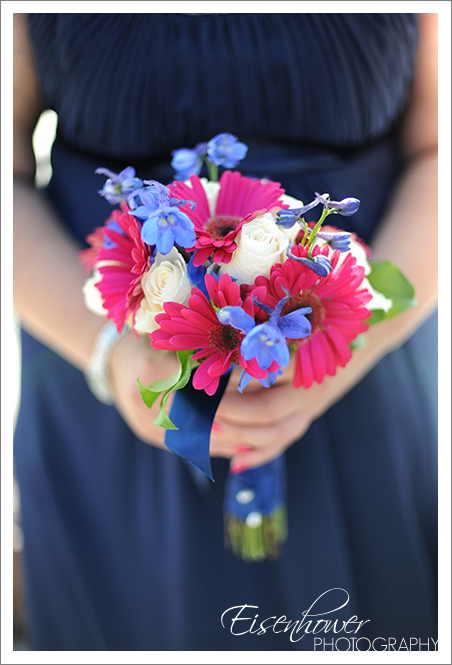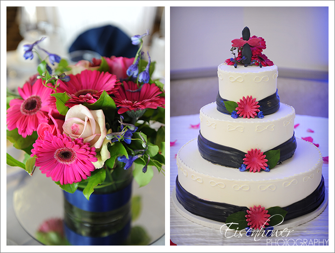 I love the unique color combination of this wedding: navy and bright pink.  The two colors are a striking combination.
