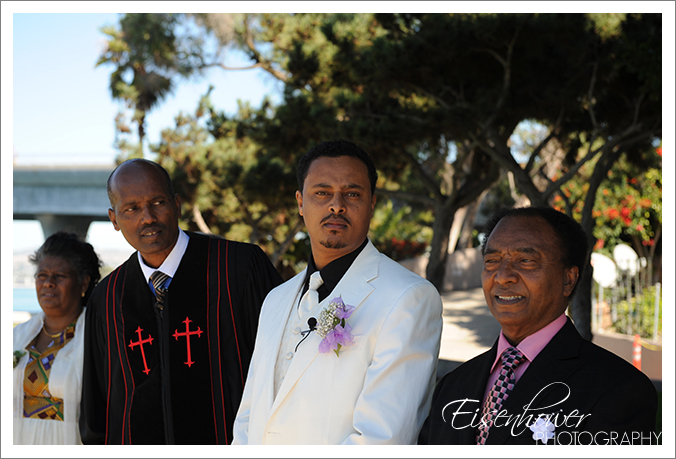 Nebyou nervously waits for the beautiful, bay front ceremony to begin.