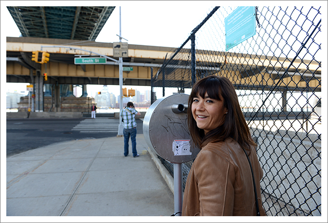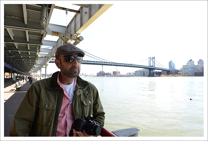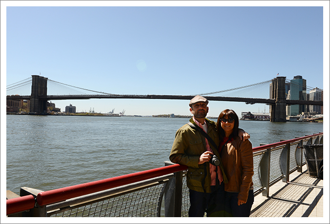 Mike in front of the Manhattan Bridge (the Brooklyn Bridge is reflected in his glasses)