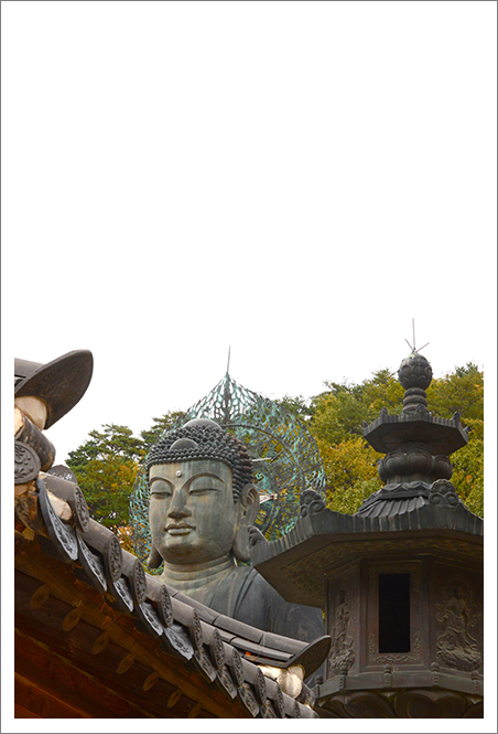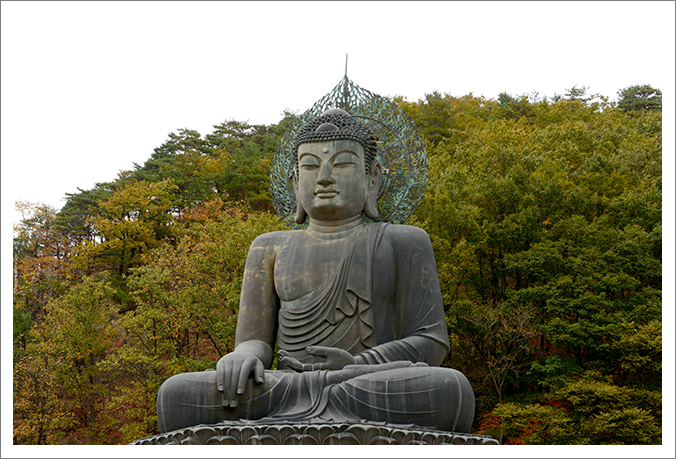 Turns out this was the gate to the Sinheungsa Temple. On the path to the temple (which we never got to) we were shocked to see a huge statue which I later learned is called the “Bronze Jwabul Statue”. The statue towered over the crowd at over 10 meters high.