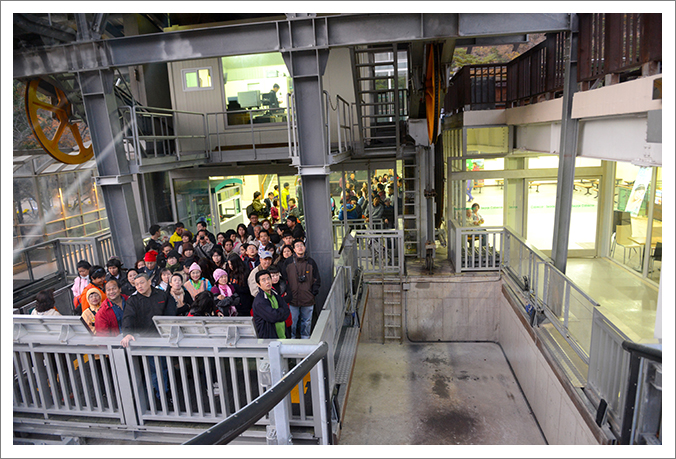 As we return, the crowd waits for the next ride up. We were waving at them, but notice not a single one of them waved back. Maybe they thought we were waving to someone behind them?