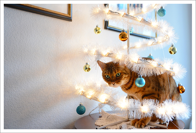 Just for fun, here are a few shots of the boy-cat getting into a little holiday mischief.