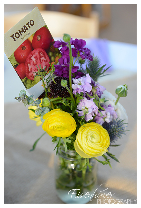 Another example of the “reuse” in “reduce, recycle, reuse” – using seed packets instead of table cards and numbers means guests can now take these home and use them