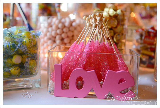 The big surprise of the evening was the elaborate candy bar. Brenda and Antonio had no idea that Brenda’s aunt had arranged for the table as a surprise gift. They absolutely loved it! (what’s not to love?) The candy table was beautifully assembled and maintained by Sherrill Kinsler of Charming Expressions.