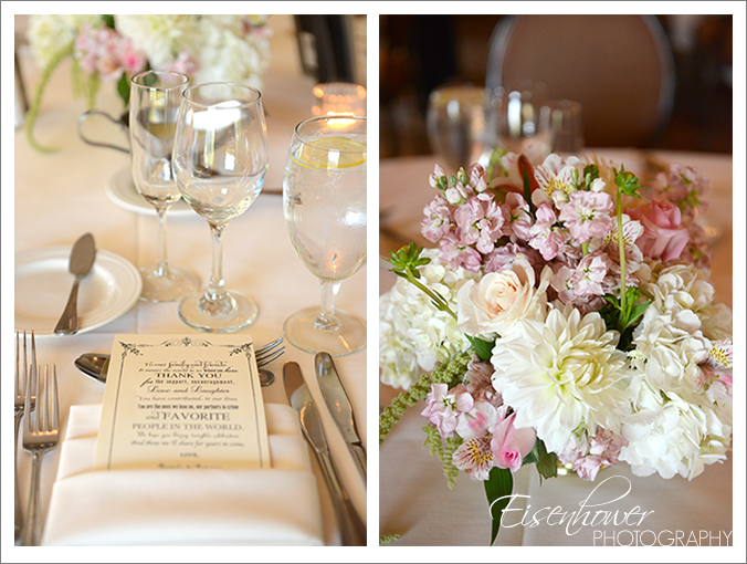 The day could not have been more beautiful when Dad and I pulled up to the clubhouse where Brenda and her bridesmaids were getting ready, at Maderas Golf Club. The location and weather worked so perfectly with Brenda’s choice of soft pink details, creating a romantic and elegant mood that lasted throughout the whole event.