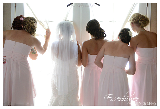 Jessica takes a peek outside before the ceremony begins