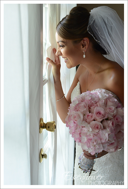 Jessica takes a peek outside before the ceremony begins