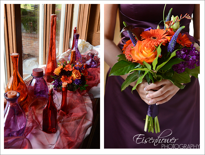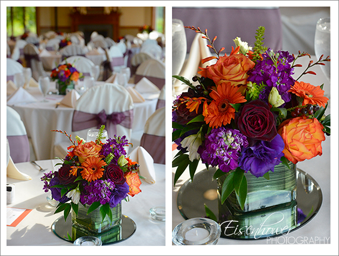 The sunset colored flower arrangements were just stunning.