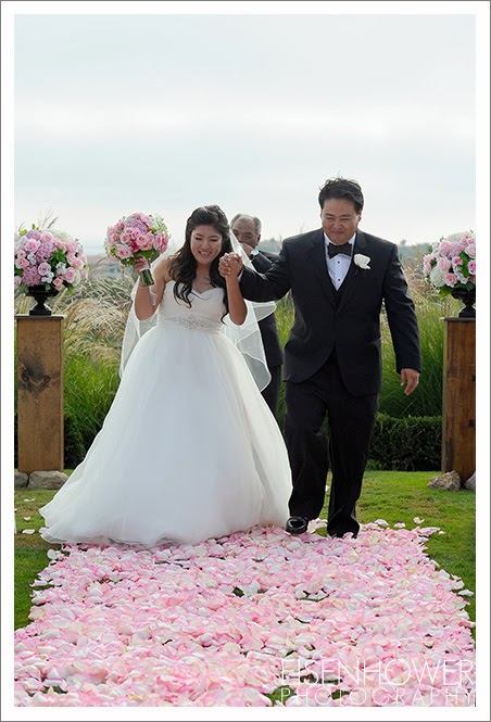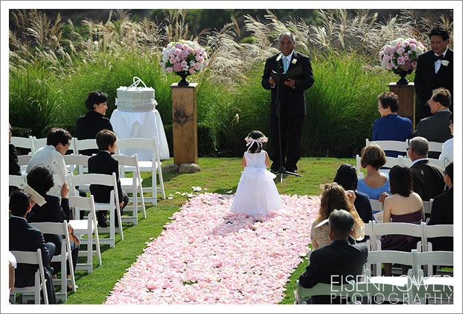 From the time that we first met Jin and Solomon to talk about their wedding plans, I knew that this would be a beautiful celebration, and as you’ll see from these photos, I was not disappointed. Jin and Solomon were married at The Crossings, a beautiful country and golf club in Carlsbad, California. The details prepared for this wedding were simple, yet elegant. From the rich carpet of pink rose petals filling the aisle, to the designer chocolates at each place setting, it was clear that so much thought and creativity went into this day. And thanks to the fantastic team at The Crossings, all of these careful plans were executed perfectly.