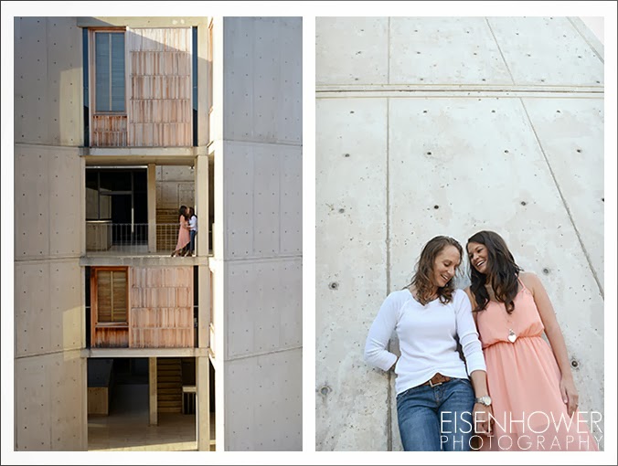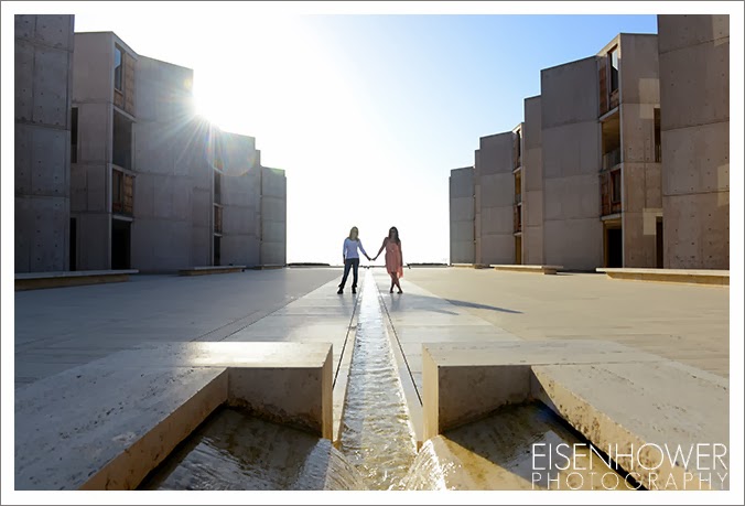 These two selected the Salk Institute in La Jolla, California as the backdrop for their engagement session, and what a fantastic choice that was!  The architecture of this facility, designed by Louis I. Kahn in the 1960’s, makes amazing use of natural light.  The dramatic lines and soft light here combined beautifully, and added beautiful texture and drama to the playful and romantic images.  I hope you enjoy these as much as I do.