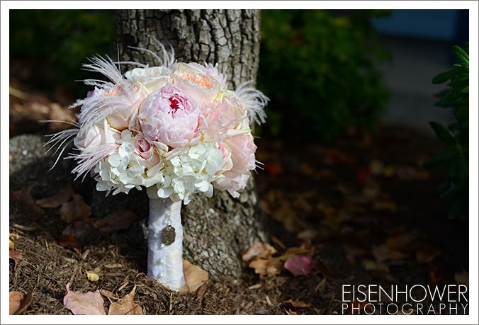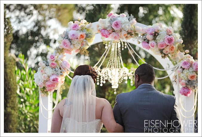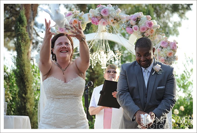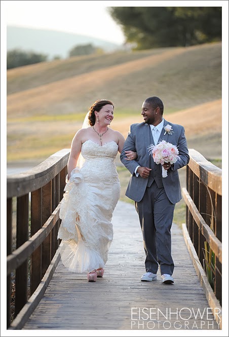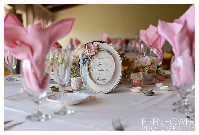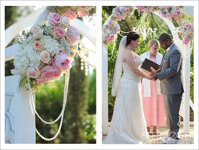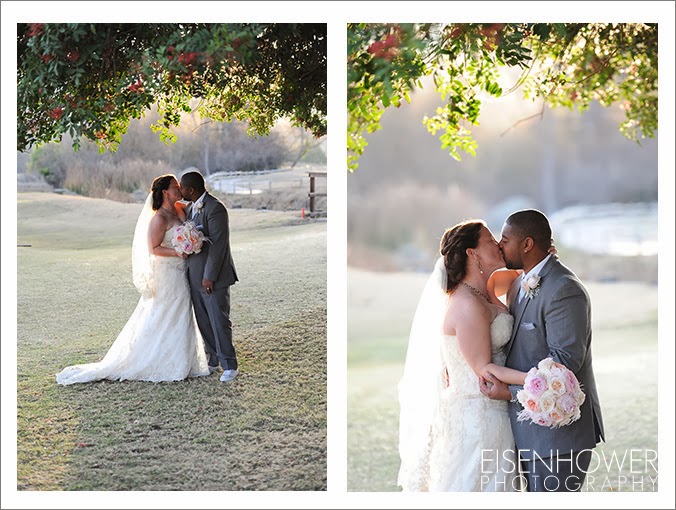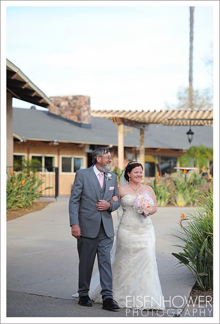 Carlton Oaks Golf Club in San Diego. Yvette, the onsite coordinator, was fantastic all day long. The wedding details for this celebration are proof that not all military women are necessarily tom boys. Melissa’s girly side definitely sparkled, from her vintage pink shoes to the feathers in her bouquet, to the pink flower arrangements that covered the ceremony and reception sites. All of which were beautifully provided by