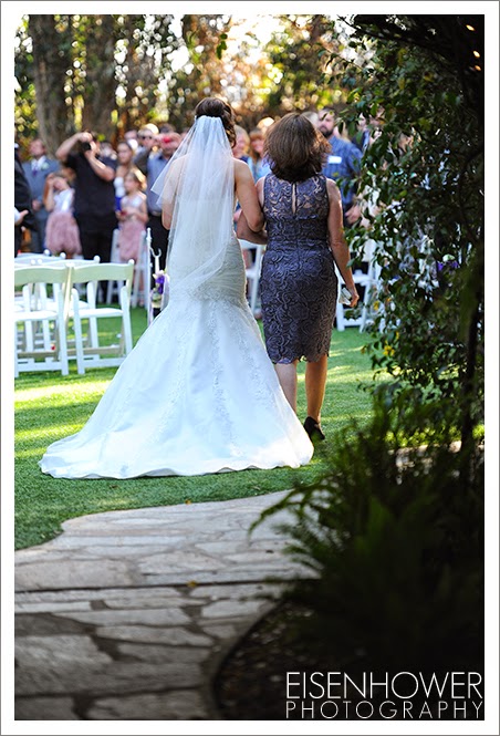 Kim’s mother walks her into the secret garden ceremony