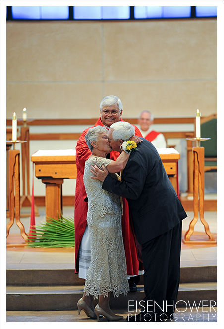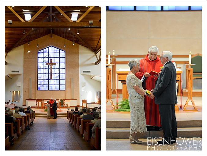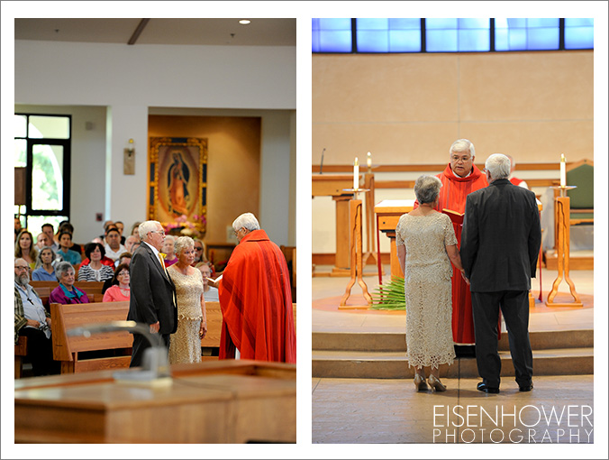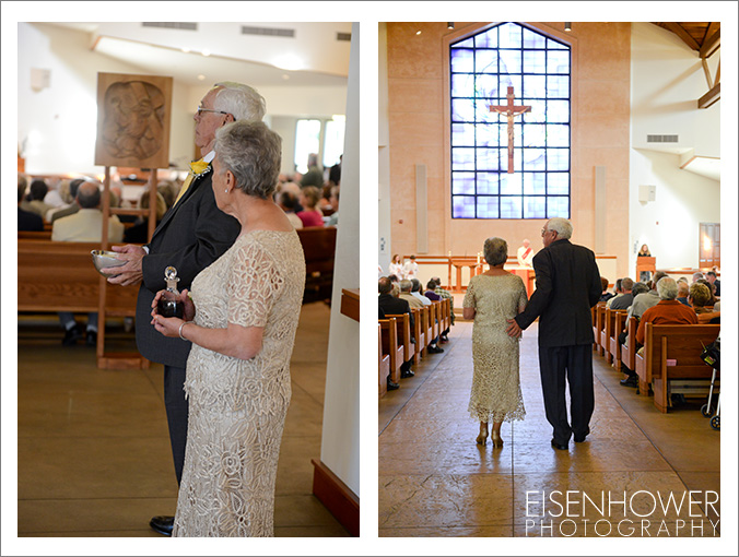 The two renewed their vows at St Peter the Apostle Catholic Church in Fallbrook, California. Their vows were part of the public Mass on the Saturday before Palm Sunday, so their family and friends took part in this portion of the service.
