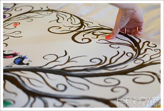 Ashley’s talented sister painted a gorgeous ‘sign in tree’. Later you’ll see the beautiful end-result.