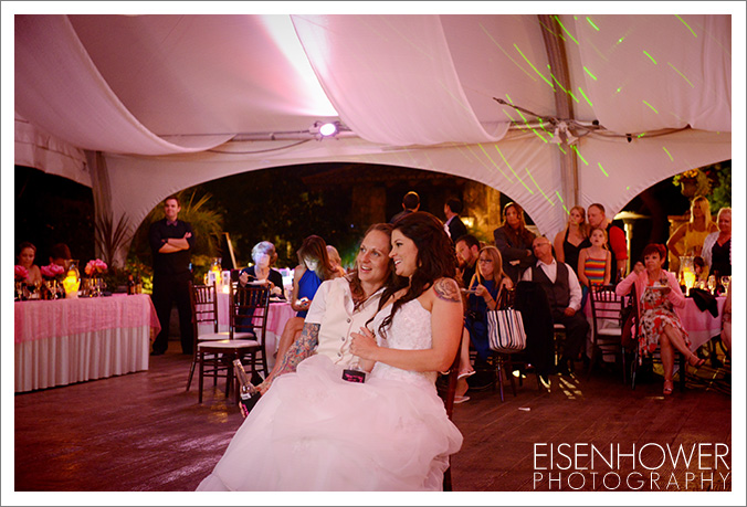The beautiful brides kicked off the party with dramatic their first dance, complete with effects compliments of the one and only Guy of DJ Guy.