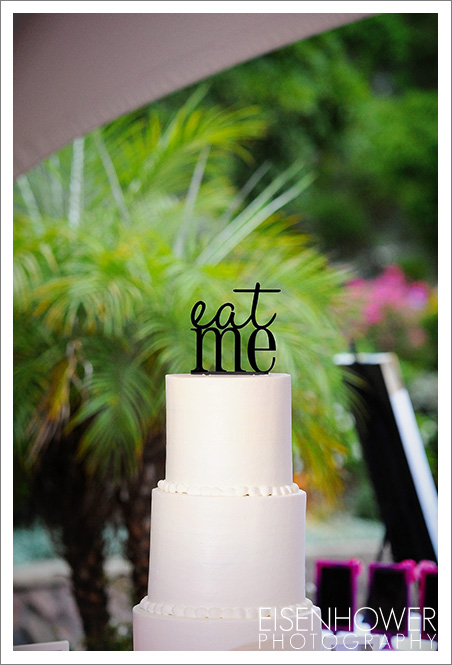 A delicious and beautifully simple cake by Elegance on Display. Again, they say the wedding was traditional, but I don’t know that I could call this ‘eat me’ topper traditional exactly.