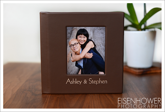 But then once you have that assortment great photos, what do you do with all of them? Ashley and Stephen chose to have us build a custom guest book that features those images, with enough white space around the photos to allow guests to sign in the margins. What a perfect keepsake this will be for them for years! And a beautiful compliment to their future wedding album.