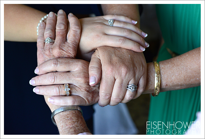 Summer, her mom, her aunt and her grandma show off three generations of wedding rings.