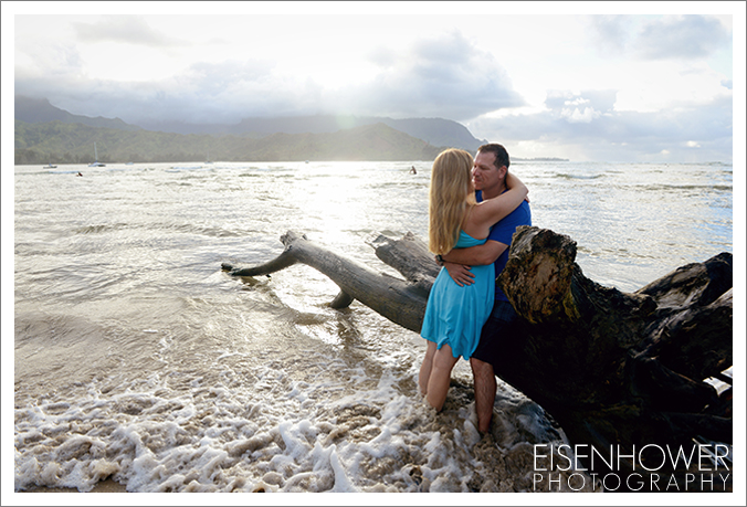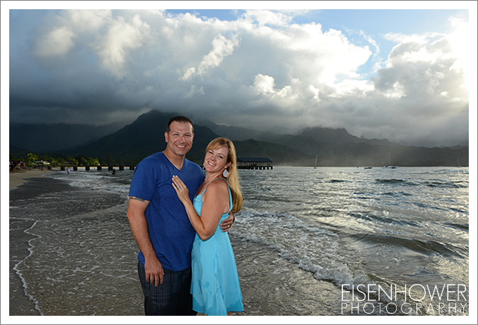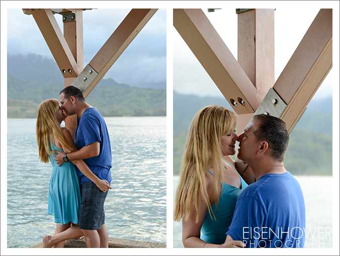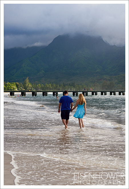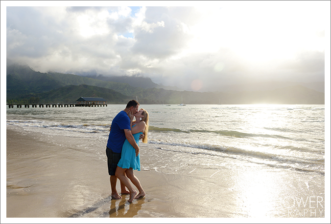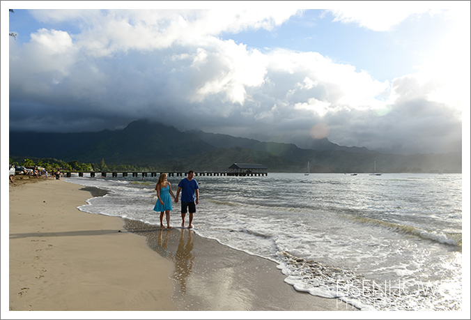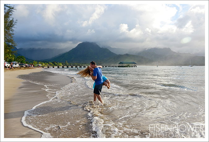And then we arrived at our destination, Hanalei Bay. The clouds and mountains were so beautifully dramatic and the perfect backdrop to these fun and romantic photos of these two.