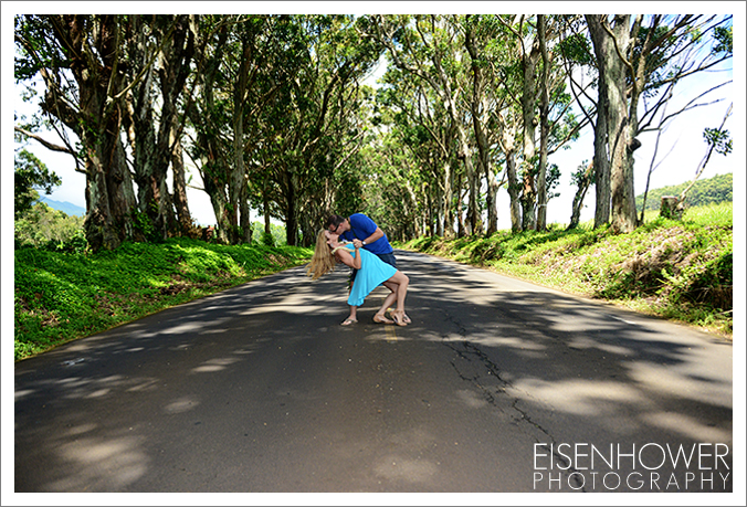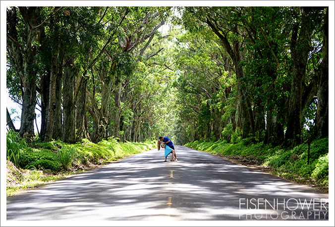 If you’ve ever been to the south end of Kauai, you’ve driven through this tunnel of trees. Having vacationed here a few times, we love the feeling of driving through this mile of trees – it’s how you know you’ve really arrived in this beautiful tropical paradise. Tina and Clint felt the same way about the spot and wanted to get some photos here.