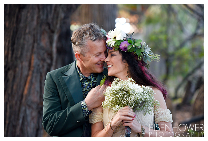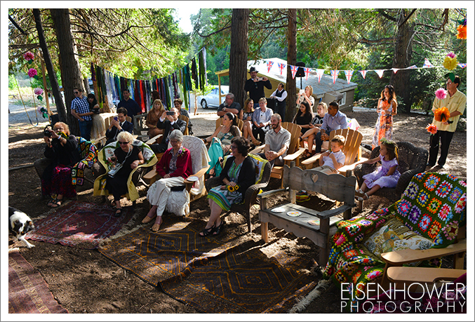 Amy and Madison decided to pass on more traditional wedding venues and ballrooms and instead opted for a smaller, more personal celebration. A handful of close relatives and friends gathered for the weekend in Palomar Mountain, where a small clearing made for a magical ceremony setting, followed by a love-filled party at the Upper Meadow Lodge, complete with delicious dinner (prepared by the property’s on-site chef) and dancing (DJ’d by family friend and host extraordinaire, Roger Parker)