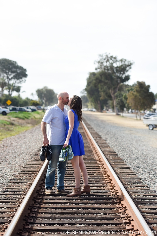 Engagement photos are always a great way to get to know a couple a little better – we love that we can take that little extra time to capture the natural connection between them. I loved that this session in particular is such a great reflection of who Caitlyn and Ryan are as a couple. Instead of spending hours at a single spot, we instead spent just a little bit of time at a few locations that were special to them. We started bright and early that morning at Gordy’s Bakery, a spot with great coffee and a ton of character near to where they live. We then headed to the train tracks in Lecuadia to take some photos of the two of them in their running shoes. And we ended up with a mini-hike at Batiquitos Lagoon.