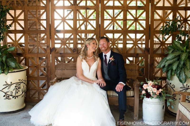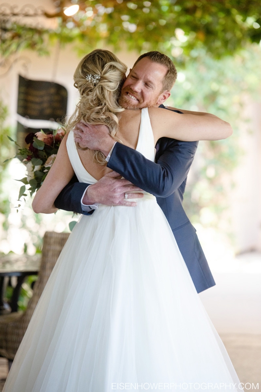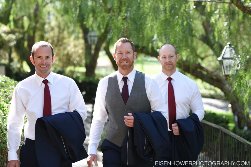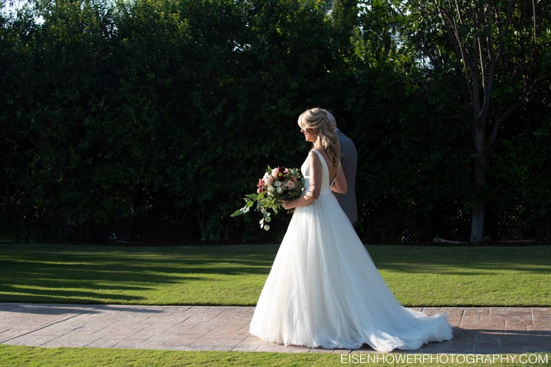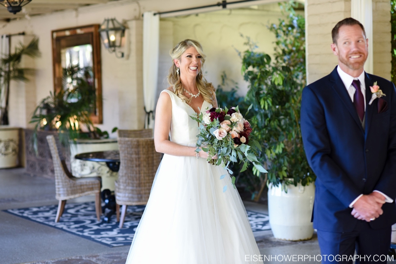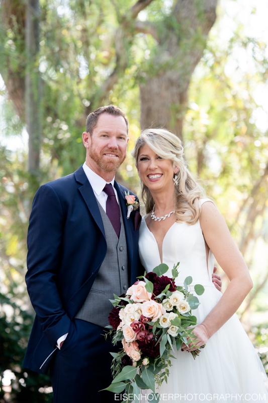 Jen and Eric were married in the garden at Carmel Mountain Ranch Estates, followed by a reception on the same property. But first, they met up with their wedding party at the Rancho Bernardo Inn for a first look and some formal photos. Be sure to scroll down to the bottom of this post to see a list of all of the talented wedding professionals who helped Jen and Eric to create this beautiful event.