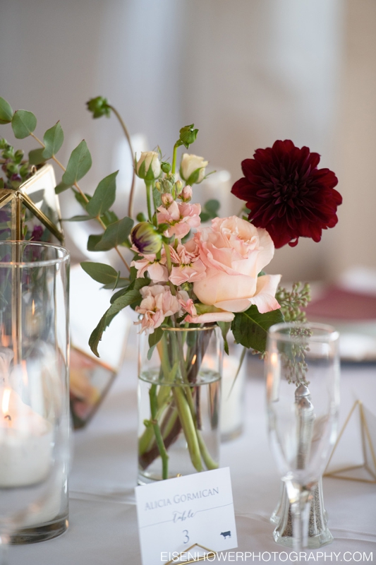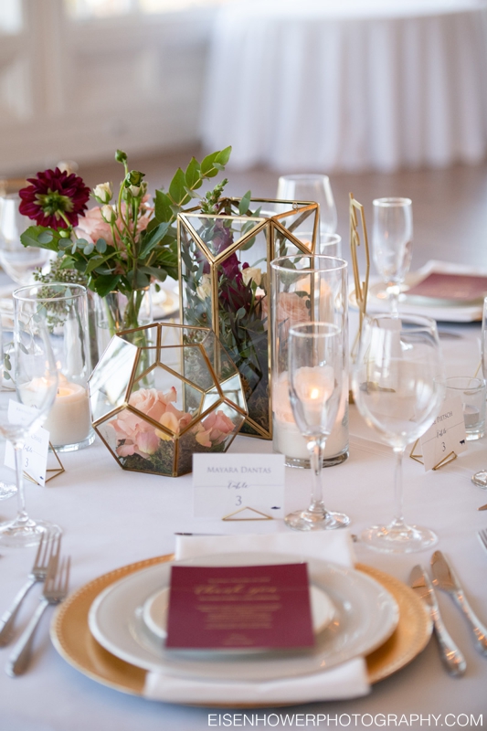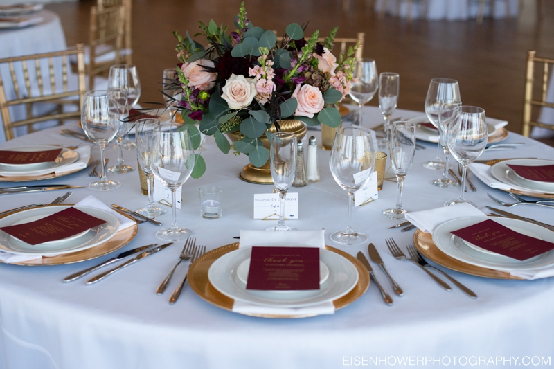 This wedding was so beautiful! The romantic burgundy and blush colors of the dresses and the stunning flowers by MR Floral and Events were beautifully tied together with gold, geometric details. It was all so modern and yet classic, perfectly executed by Kimberly of Sisti & Co. And of course, Eric and Jen were so great! Not only are they a gorgeous couple, elegant and super stylish, but they also really enjoyed the day and each other, which made our jobs so much fun.